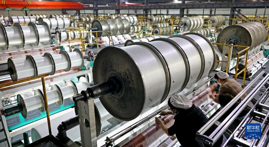 1月27日,在江蘇連云港高新區海州工業園,工人在毛毯生產線上忙碌。