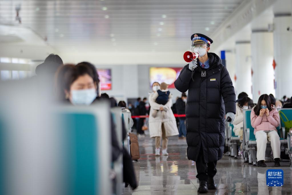 1月26日,賀凱在候車室巡視。