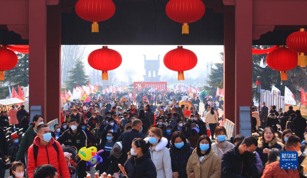 1月22日,游人在山東省臨沂市沂蒙山龜蒙景區(qū)新春廟會(huì)上游玩。