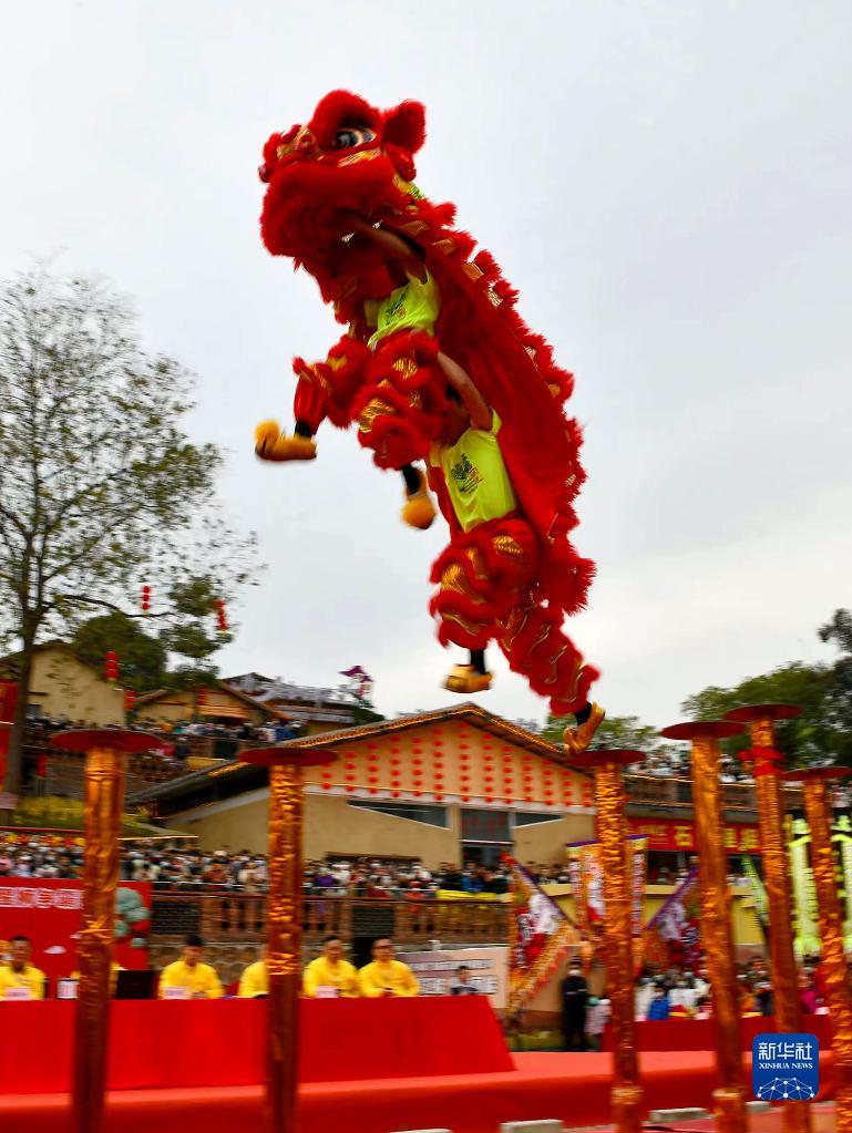 當(dāng)日,2023年肇慶市端州區(qū)迎春醒獅爭霸賽在肇慶市石牌里文創(chuàng)街區(qū)廣場鳴鑼開賽,共有10支傳統(tǒng)南獅隊伍、5支高樁醒獅隊伍參賽展“絕活”,精彩的比賽讓現(xiàn)場觀眾大飽眼福。新華社發(fā)(劉春林攝)