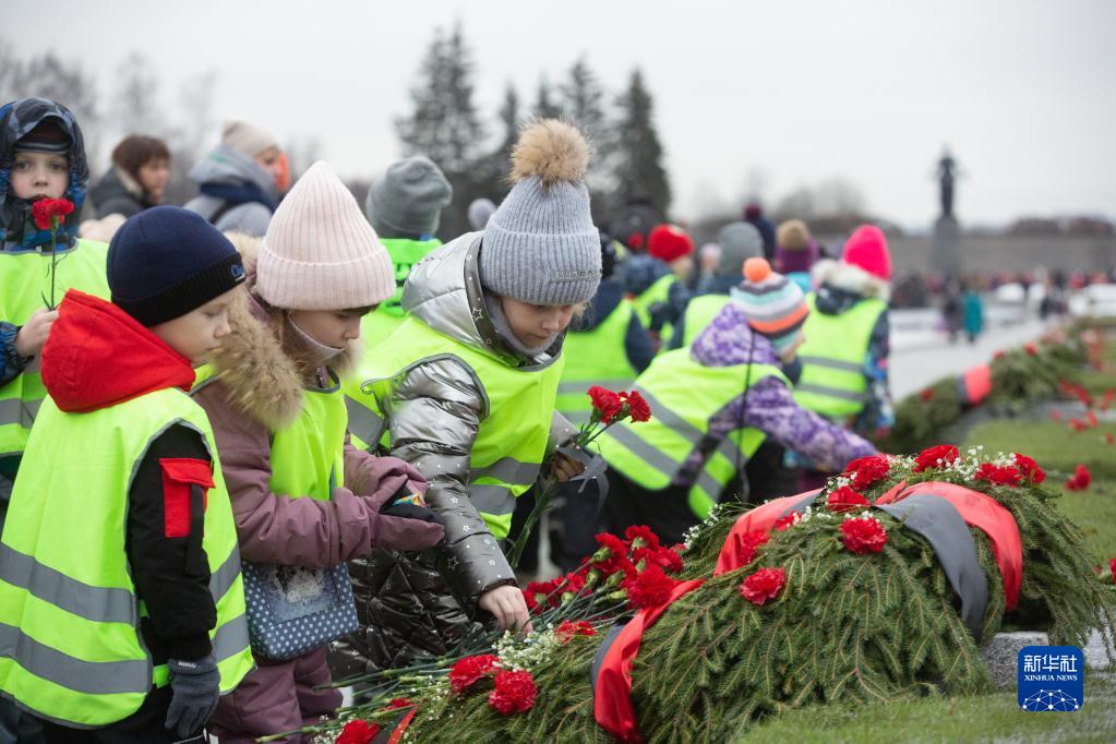 1月27日,孩子們在俄羅斯圣彼得堡舉行的紀念活動上獻花。