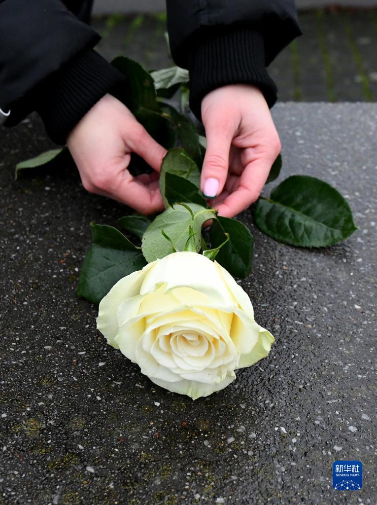 1月27日,一名女子在德國(guó)柏林的歐洲被害猶太人紀(jì)念碑獻(xiàn)花。