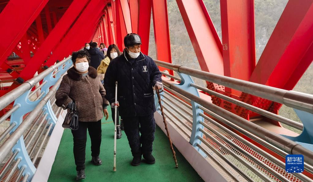1月25日,游客在湖南省湘西土家族苗族自治州吉首市矮寨特大懸索橋上游覽。