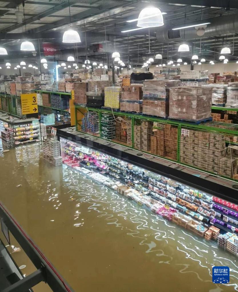 這張來(lái)自社交媒體的照片顯示,1月27日,新西蘭奧克蘭一大型超市遭洪水侵襲。