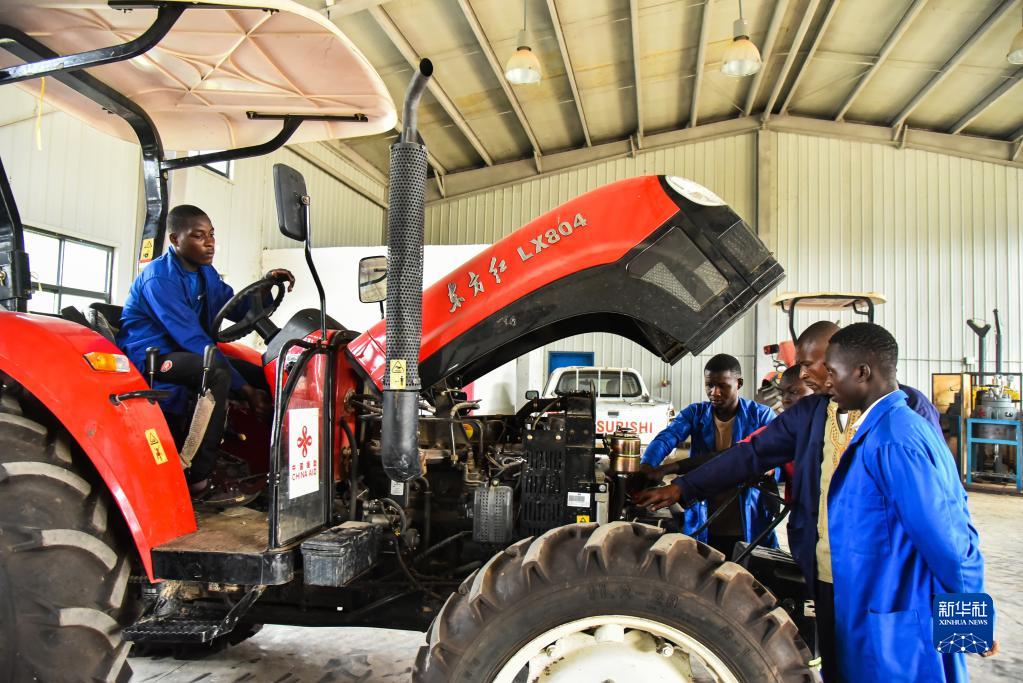 1月12日,學生在喀麥隆亞巴西農業職業技術中學上拖拉機實踐課。