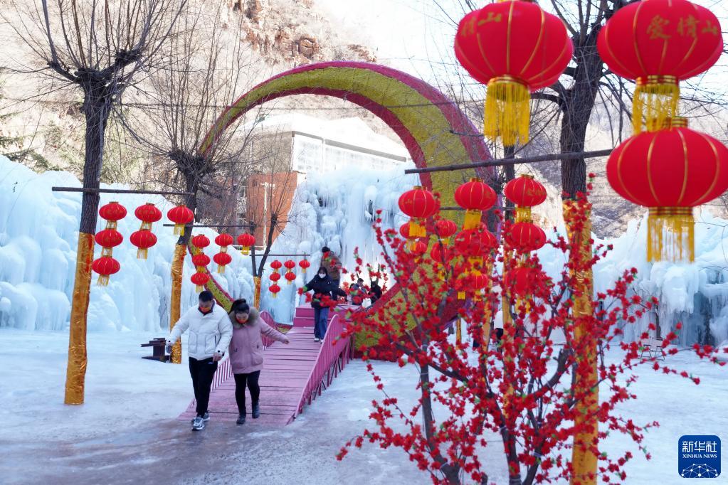 正月里,位于太行山深處的河北省邢臺市天河山景區(qū)迎來眾多游客。人們腳踏冰雪,在這里體驗雪地游樂設(shè)施,欣賞冰瀑美景。