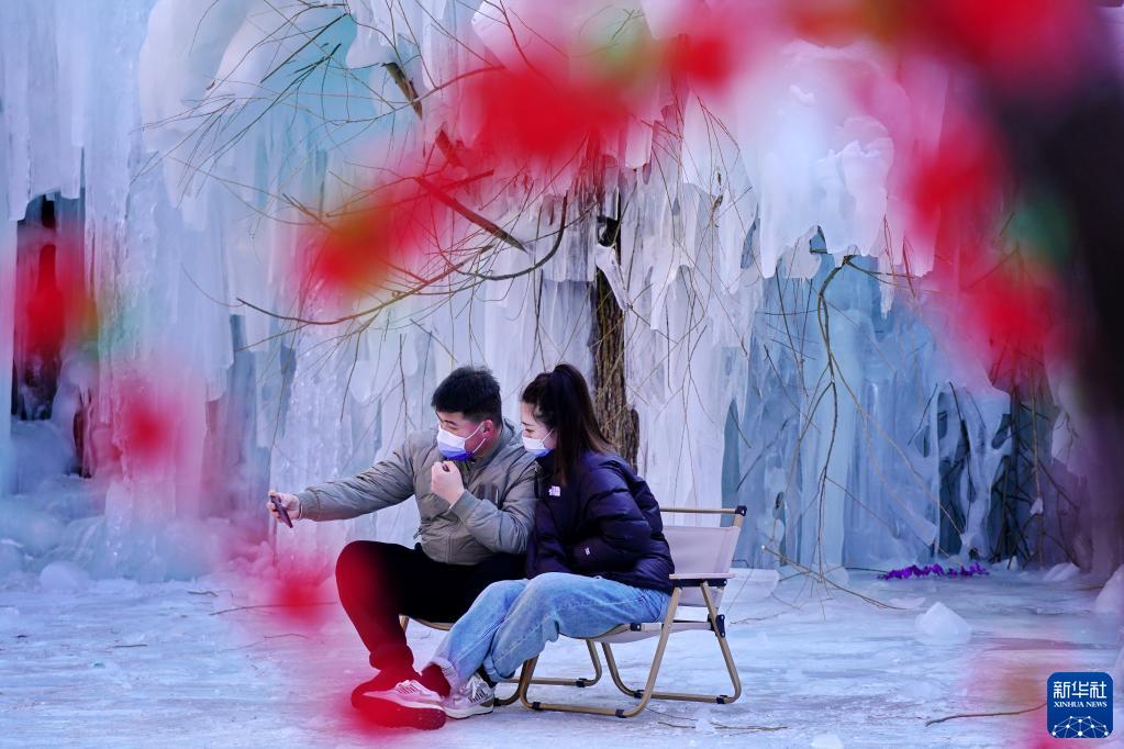 正月里,位于太行山深處的河北省邢臺市天河山景區迎來眾多游客。人們腳踏冰雪,在這里體驗雪地游樂設施,欣賞冰瀑美景。