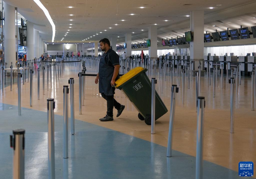 1月28日,在新西蘭奧克蘭國際機場,一名工作人員經過空蕩蕩的國際出發大廳。
