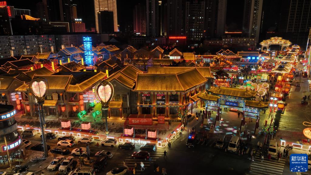 1月23日,市民在沈陽新春皇寺廟會游玩(無人機照片)。