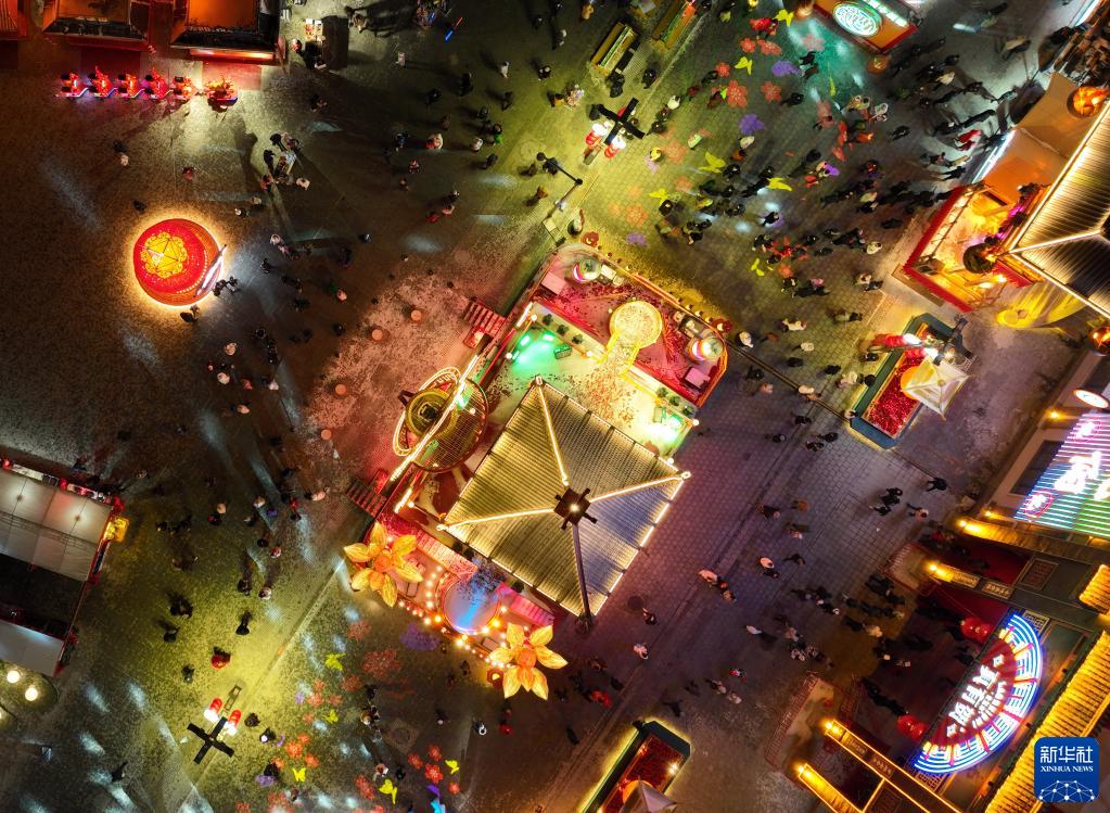 1月23日,市民在沈陽新春皇寺廟會游玩(無人機照片)。