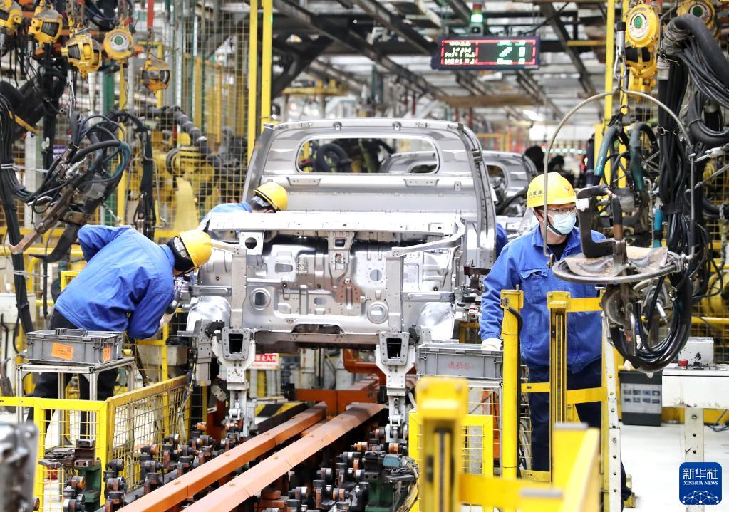 1月28日,工人在上汽通用五菱青島分公司的生產車間進行焊接作業。