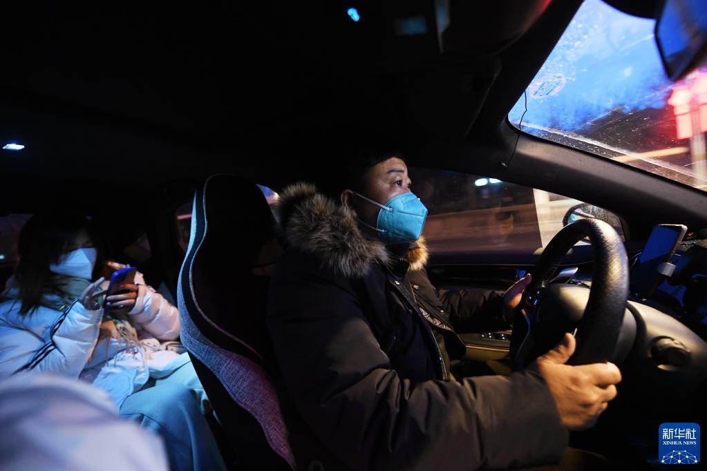 1月28日,滴滴網約車司機劉俊杰在送接到的第一單乘客前往目的地。