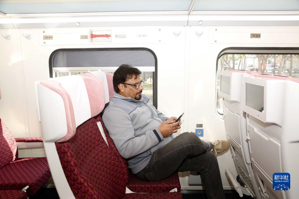 1月27日,在巴基斯坦伊斯蘭堡,乘客坐在綠線特快列車組的中國進口鐵路客車內。