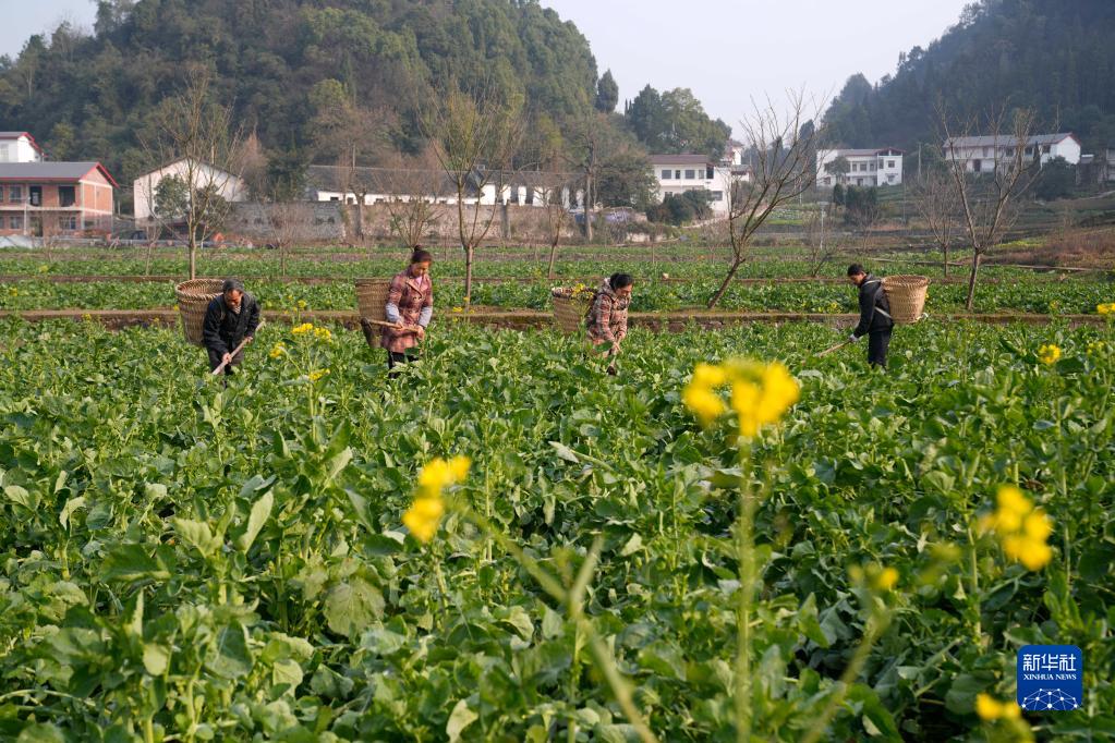 1月28日,村民在重慶市北碚區(qū)天府鎮(zhèn)代家村油菜種植基地除草。