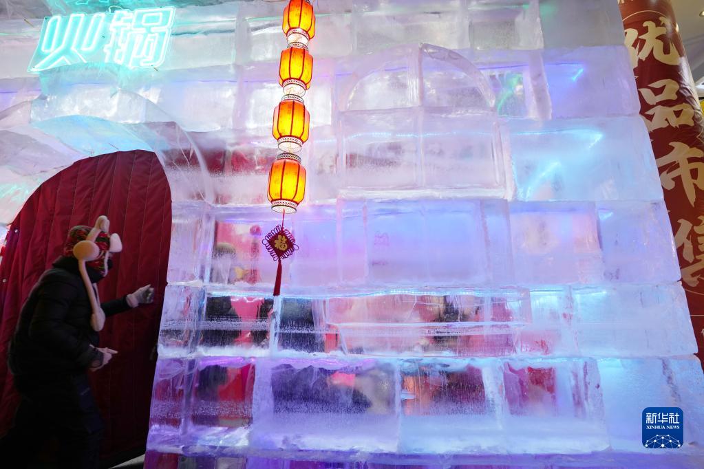 時下正值“冰城”哈爾濱市的冰雪旅游旺季,在百年老街中央大街上,一處用冰塊搭建而成的“冰屋”成為眾多游客參觀體驗和拍照留影的“打卡地”。