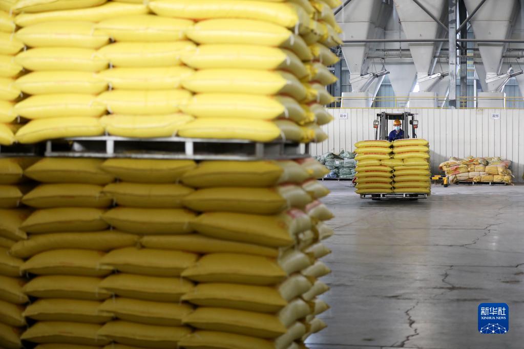 1月29日,在位于湖南資興經濟開發區的郴州雙胞胎飼料有限公司,工人在生產車間駕駛叉車運輸飼料。