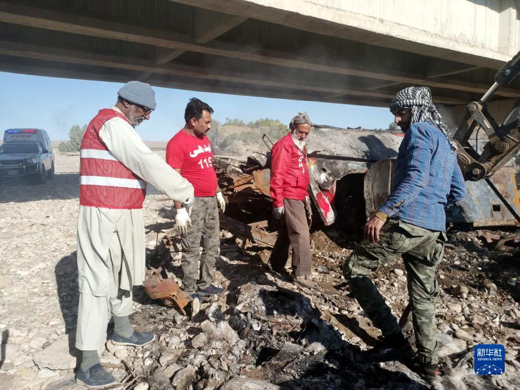 1月29日,搜救人員在巴基斯坦俾路支省的事故現場工作(手機拍攝)。新華社發