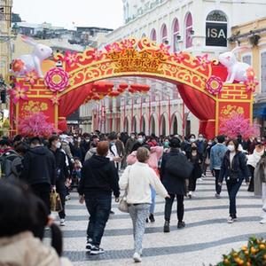 游客在澳門大三巴牌坊前參觀游覽(1月26日攝)。