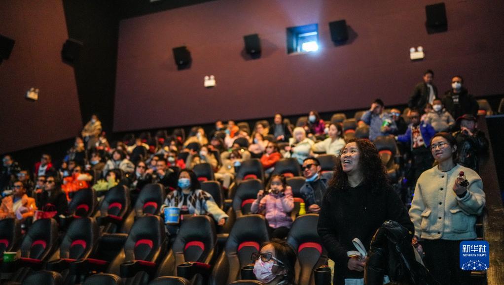 1月29日,觀眾在貴陽市越界影城(未來方舟店)觀看片后花絮。新華社記者 陶亮 攝