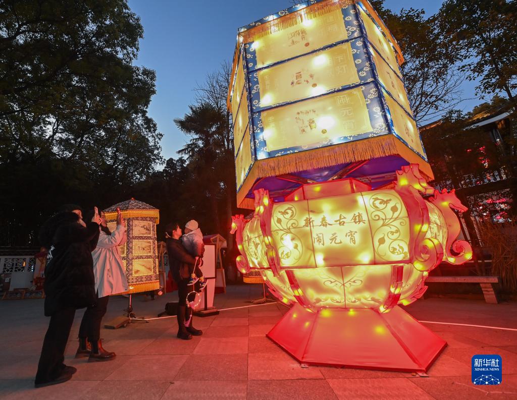 當日,有數百年歷史的浙江省嘉興市秀洲區新塍古鎮元宵民俗“鰲山燈會”正式亮燈,現場彩燈交相輝映,五彩斑斕。除了民俗燈展外,“鰲山燈會”現場還有蛋畫、銀杏畫、紙扎燈等非遺文化民俗展示。
