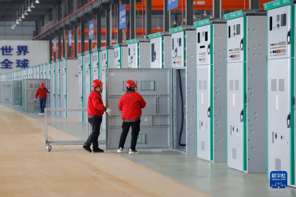 1月29日,工人在貴州省黔南布依族苗族自治州獨山縣經濟開發區一家電力裝備制造廠內進行配電柜組裝。