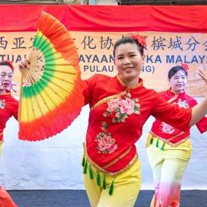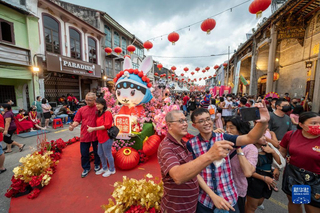 1月28日,人們在馬來西亞檳城州首府喬治市舉行的檳城廟會上游玩。