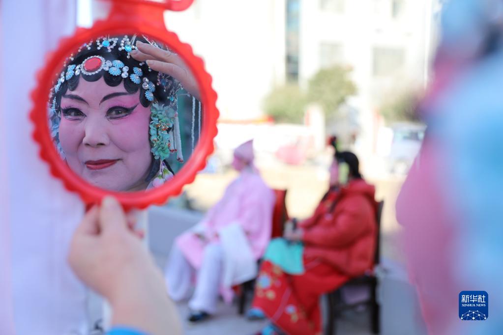 1月29日,在溫縣文化廣場,演員在演出前化裝。