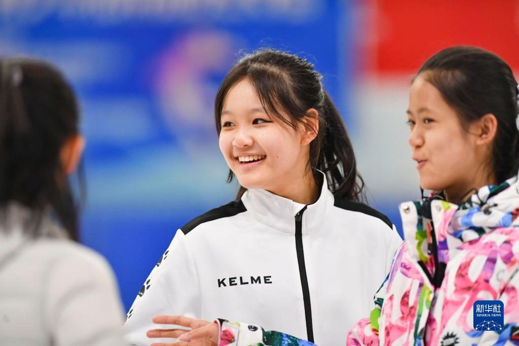 參訓(xùn)學(xué)員趙朗嘉(中)和同伴在訓(xùn)練間隙交流(1月29日攝)。