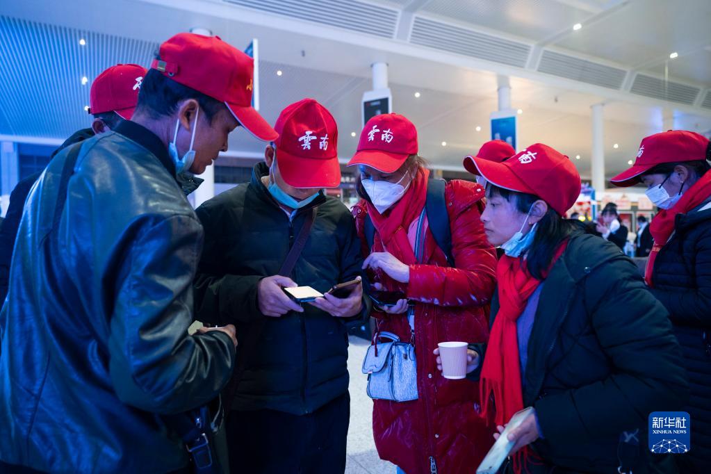 當(dāng)日,來自云南省多地的370多名務(wù)工人員在昆明南站免費(fèi)搭乘動車前往廣東返崗務(wù)工。近年來,云南省努力實(shí)現(xiàn)“兩需求一暢通”,將農(nóng)村勞動力返崗就業(yè)需求與企業(yè)用工需求無縫對接,暢通群眾“從家門到廠門”返崗就業(yè)通道。