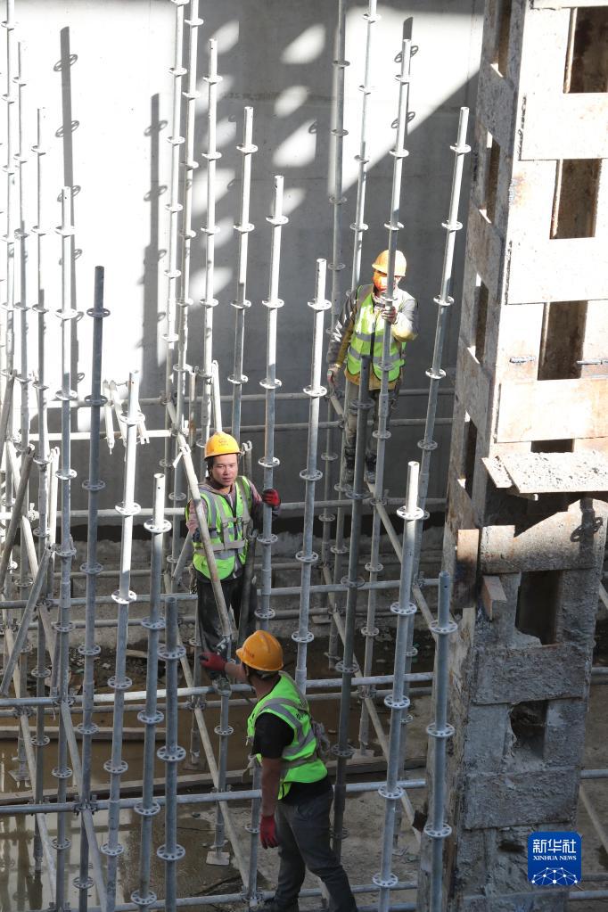 中鐵七局建設者在福州地鐵濱海快線閩都站內施工(1月29日攝)。目前福州地鐵濱海快線全線車站已動工,10個車站主體結構已封頂,19臺盾構機正在掘進。