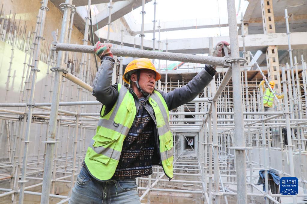 中鐵七局建設者在福州地鐵濱海快線閩都站內(nèi)施工(1月29日攝)。目前福州地鐵濱海快線全線車站已動工,10個車站主體結(jié)構(gòu)已封頂,19臺盾構(gòu)機正在掘進。