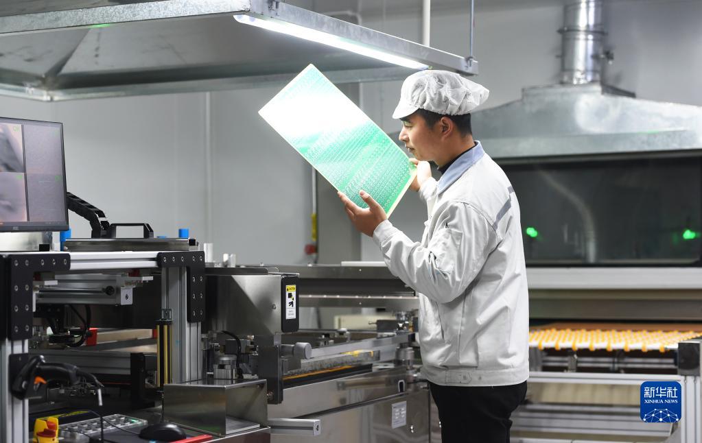 1月30日,在浙江省杭州市臨安區一家電子企業,員工在檢查流水線上的線路板。