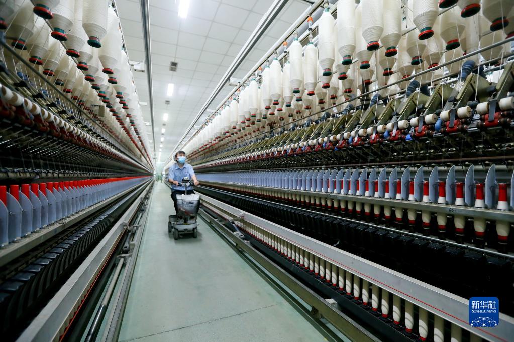1月30日,山東省青島即發盛寶紡織有限公司的紡織工人在智能化生產線上生產棉紗產品。