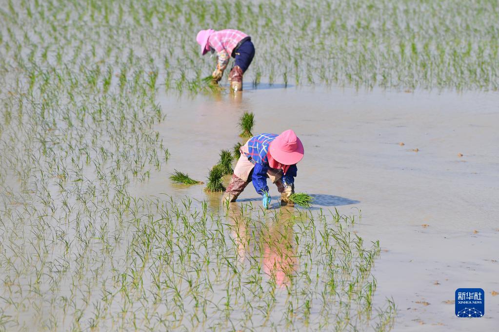 1月30日,農(nóng)民在海南省海口市瓊山區(qū)云龍鎮(zhèn)種早稻。