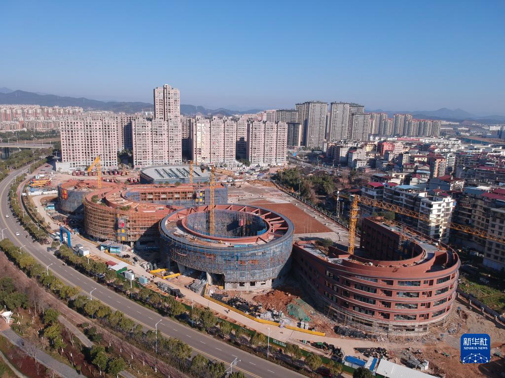 1月30日拍攝的福建省南平市第三實驗學校建設項目施工現場(無人機照片)。