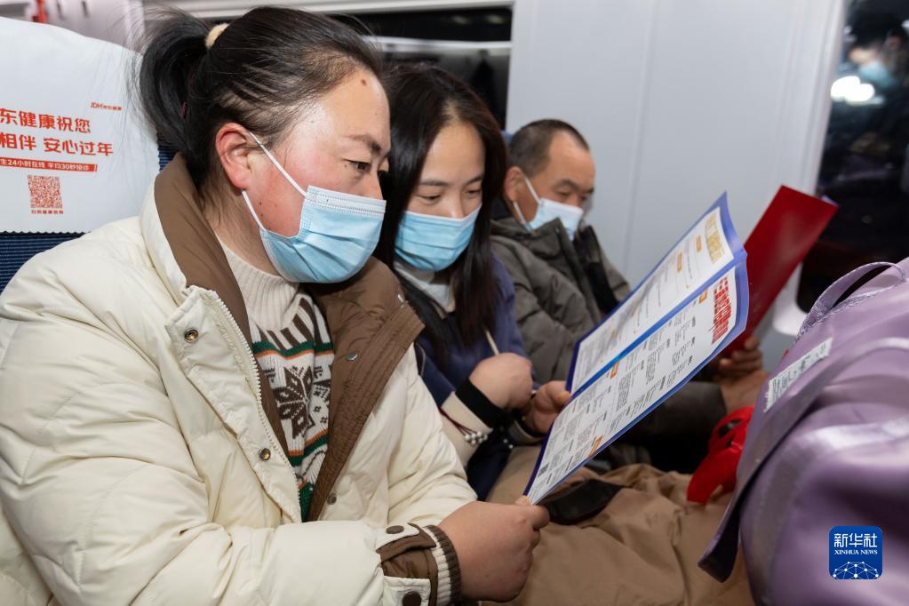 1月30日,旅客在阜陽開往上海的G7445次列車上查看長三角務(wù)工招聘信息。