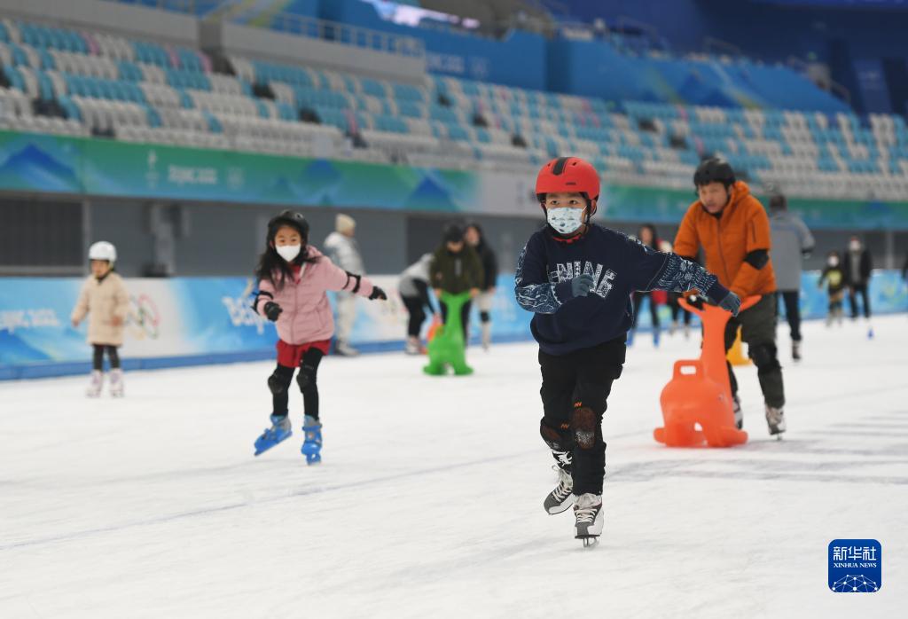 2023年1月22日,游客在國家速滑館滑冰。
