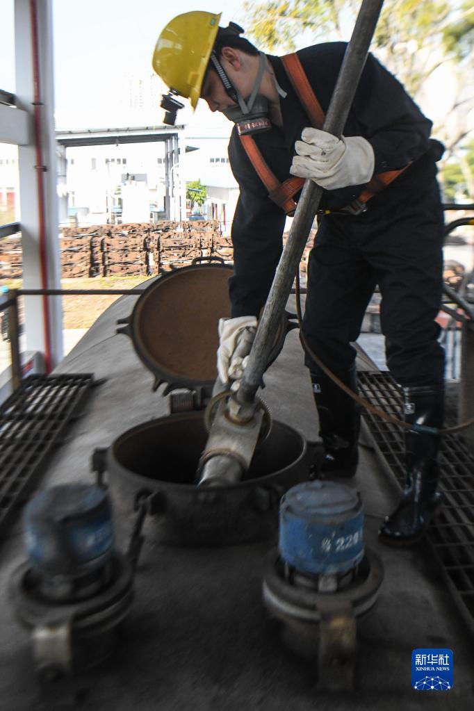 春運期間,通過西部陸海新通道發往全國各地的食用油、汽油類貨物運輸繁忙,油罐車運力劇增。在中國鐵路南寧局集團有限公司南寧南車輛段,一批專門司職油罐車的洗罐工,在悶、濕、熱的工作環境下對油罐車內部進行深度清潔,為油品安全保駕護航。
