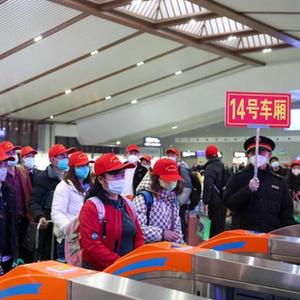 當(dāng)日,來自貴州省畢節(jié)市的600名務(wù)工人員分別在畢節(jié)站和黔西站,免費搭乘動車前往廣東省廣州市返崗務(wù)工,這是今年畢節(jié)市通過粵黔東西部勞務(wù)協(xié)作開行的首趟免費“點對點”返崗專列。