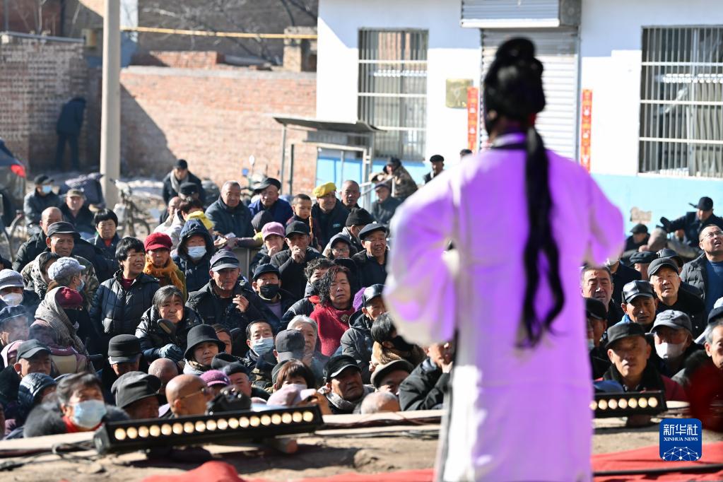1月30日,在山西省太原市清徐縣孟封村,村民觀看太原市晉劇藝術(shù)研究院實驗二團(tuán)演員演出。