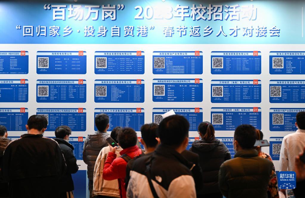 1月31日,求職者在查看招聘信息。當日,中共海南省委、海南省人民政府在海口市舉辦“回歸家鄉·投身自貿港”春節返鄉人才對接會。據了解,本場招聘會有245家用人單位提供了5823個崗位。