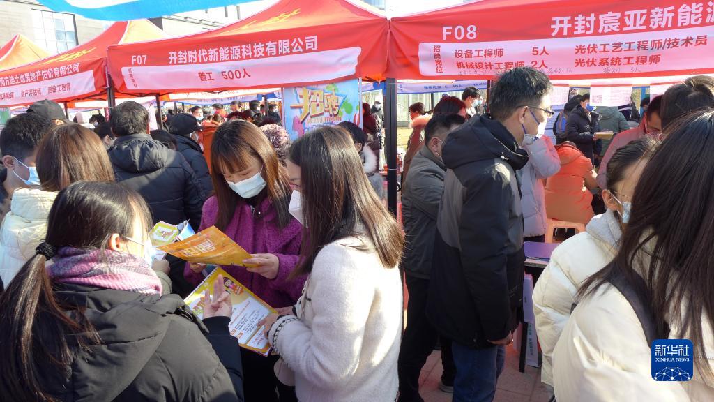 1月31日,求職者在河南省開封市舉行的春風行動新春大型招聘會上尋找適合自己的崗位。