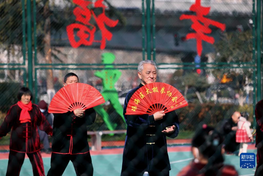 1月31日,在合肥市瑤海區一市民體育公園,居民在鍛煉身體。