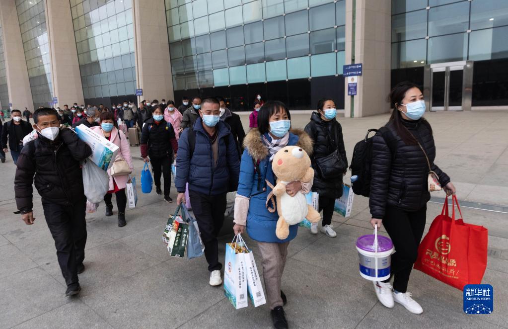 2月1日,來自四川省遂寧市的務工人員乘坐務工大巴直通車來到成都東站,準備乘坐高鐵。
