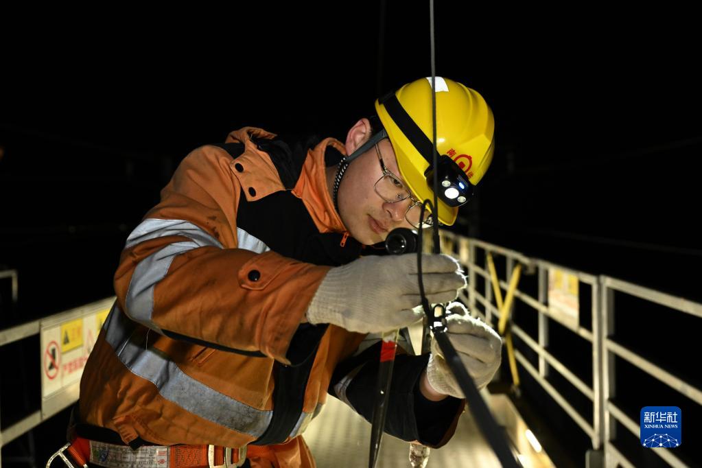 春運期間,中國鐵路上海局集團(tuán)有限公司南京供電段接觸網(wǎng)維修車間的接觸網(wǎng)工們冒著寒風(fēng),搶抓凌晨“天窗”時段,對接觸網(wǎng)設(shè)備展開全方位檢修,排除隱患,確保列車通行安全。