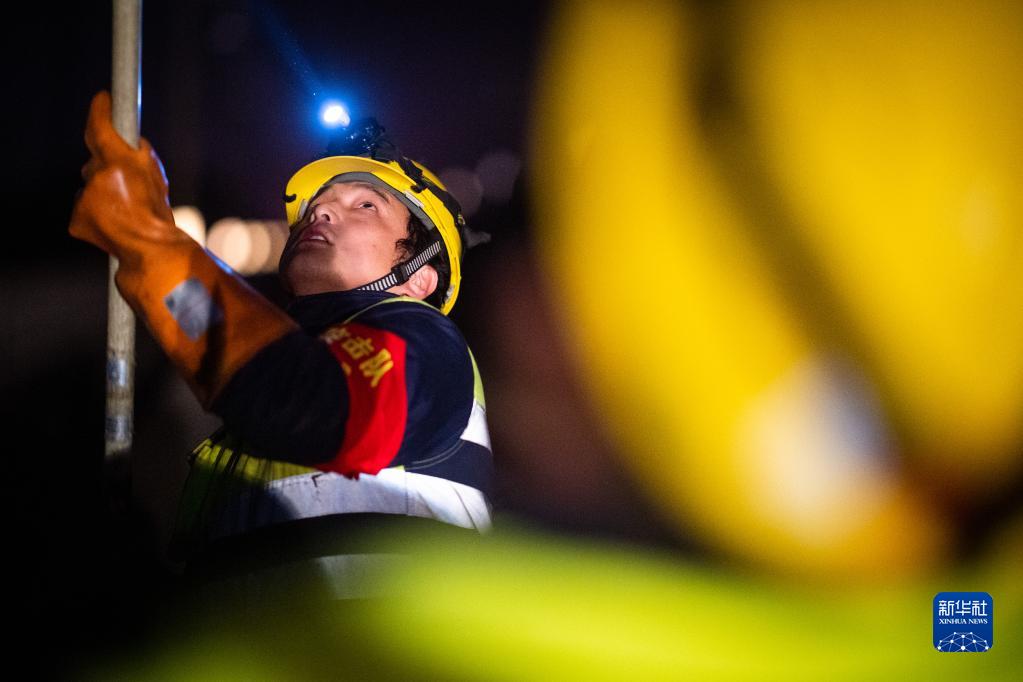 鐵路接觸網供電設備是否正常運轉,關系著每趟列車的安全運行。春運期間,中國鐵路武漢局集團有限公司武漢供電段高鐵接觸網檢修工人利用0點到6點的“天窗點”,頭戴安全帽、身穿反光服,對京廣高鐵武漢段的接觸網進行檢修、維護,為高鐵供電保駕護航。