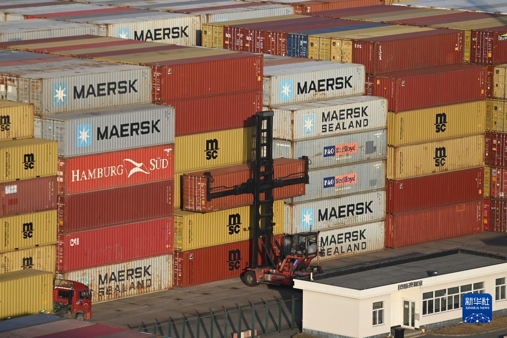1月31日拍攝的寧波舟山港穿山港區集裝箱碼頭。
