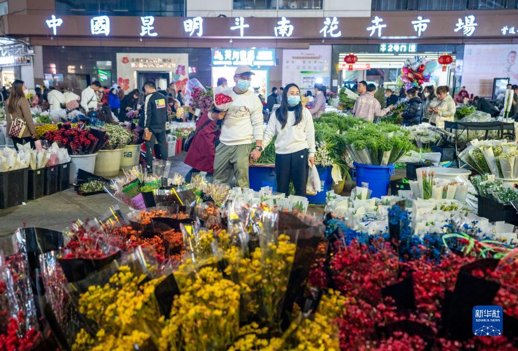 近日,受鮮花節(jié)慶消費拉動作用等因素影響,位于云南省昆明市的斗南花市鮮花價格行情全線上漲,迎來新年“開門紅”。