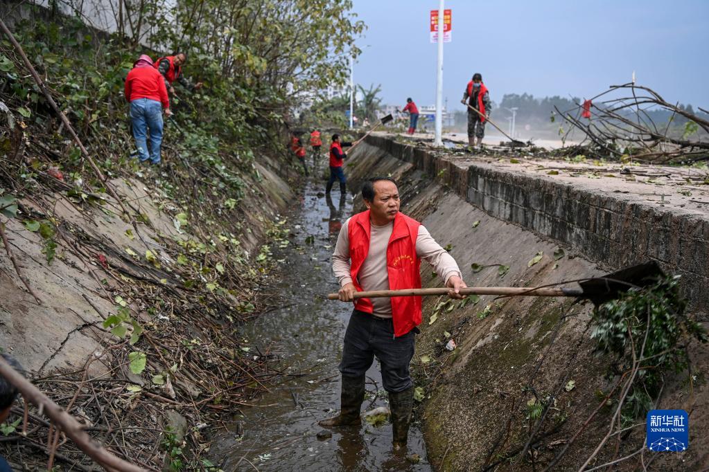 2月1日,廣西興業(yè)縣沙塘鎮(zhèn)的黨員干部群眾一起清理灌渠內(nèi)的雜物。