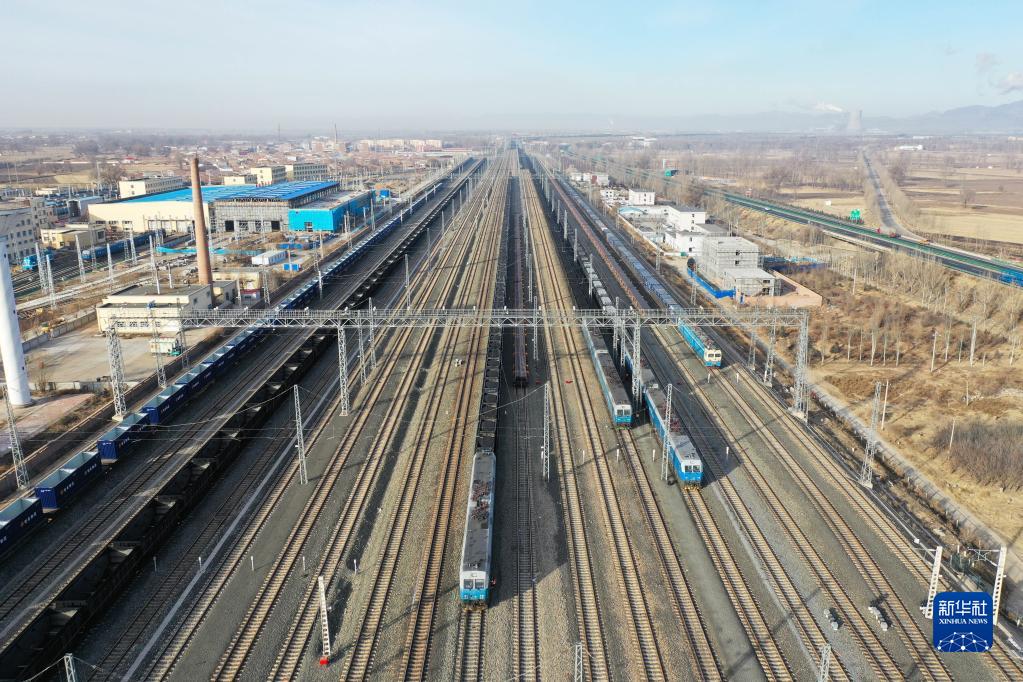 這是2月1日在呼和浩特南站拍攝的運煤列車(無人機照片)。